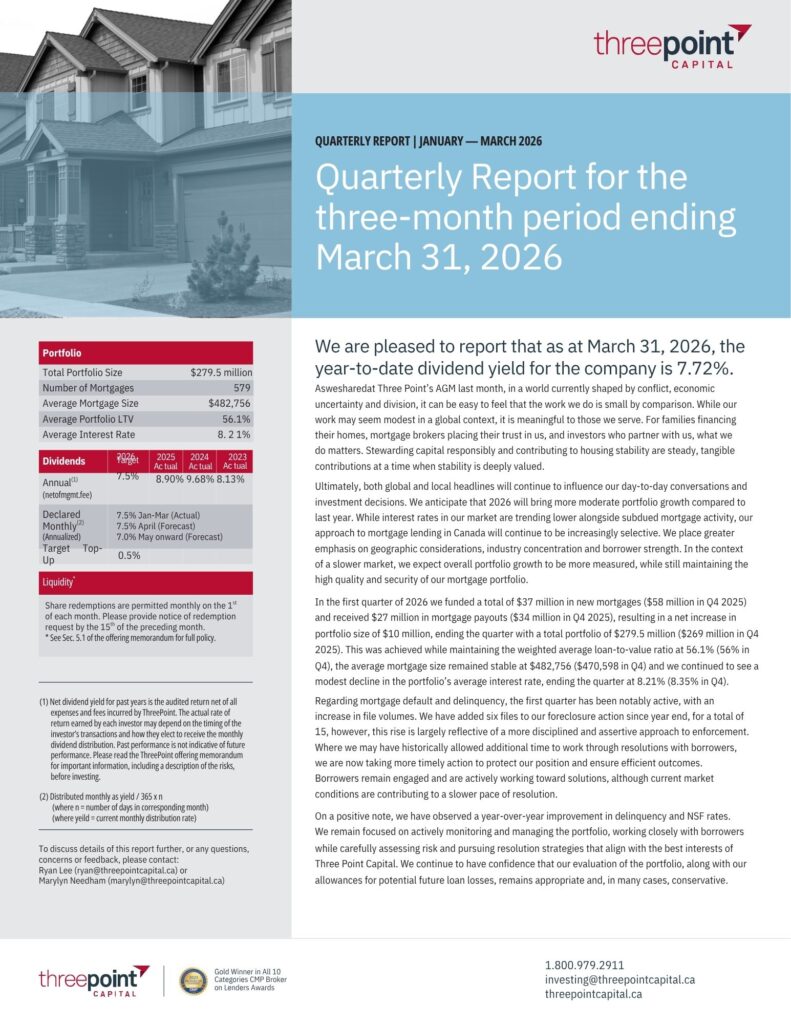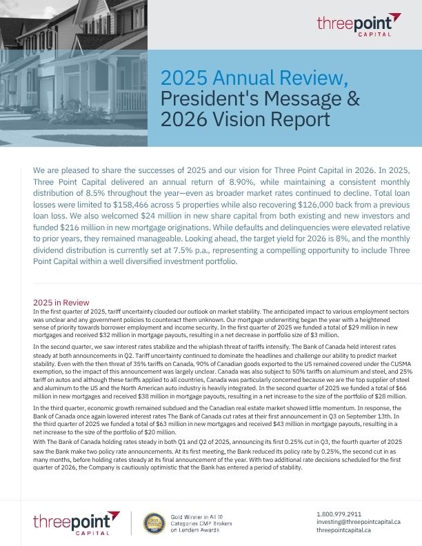 Three Point Capital provides an Annual Report as well as Quarterly Reports showing our activity and progress. Stay informed as we grow together.